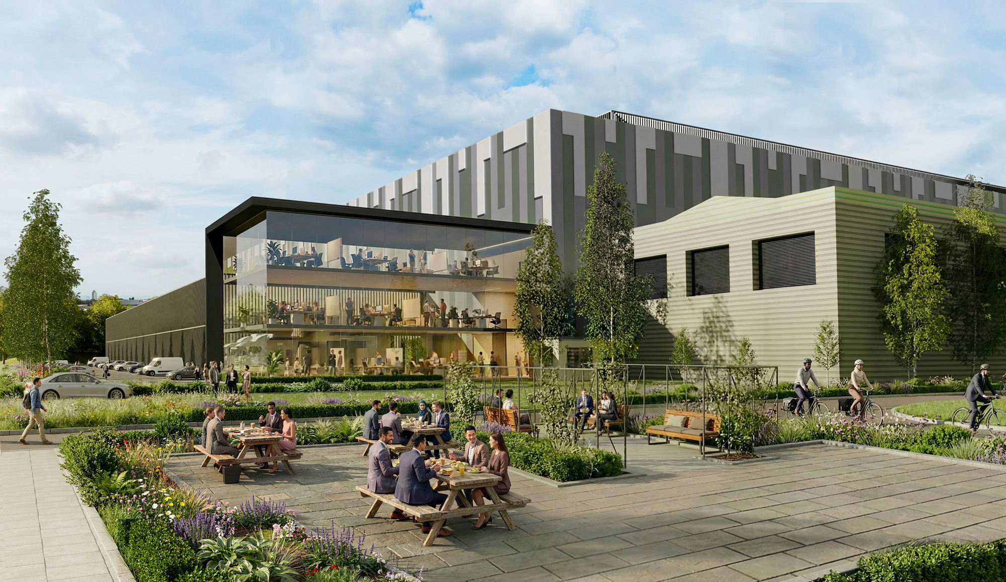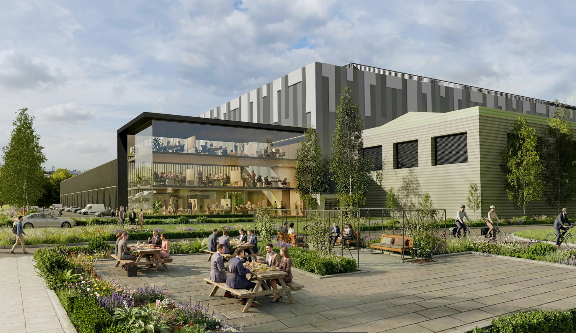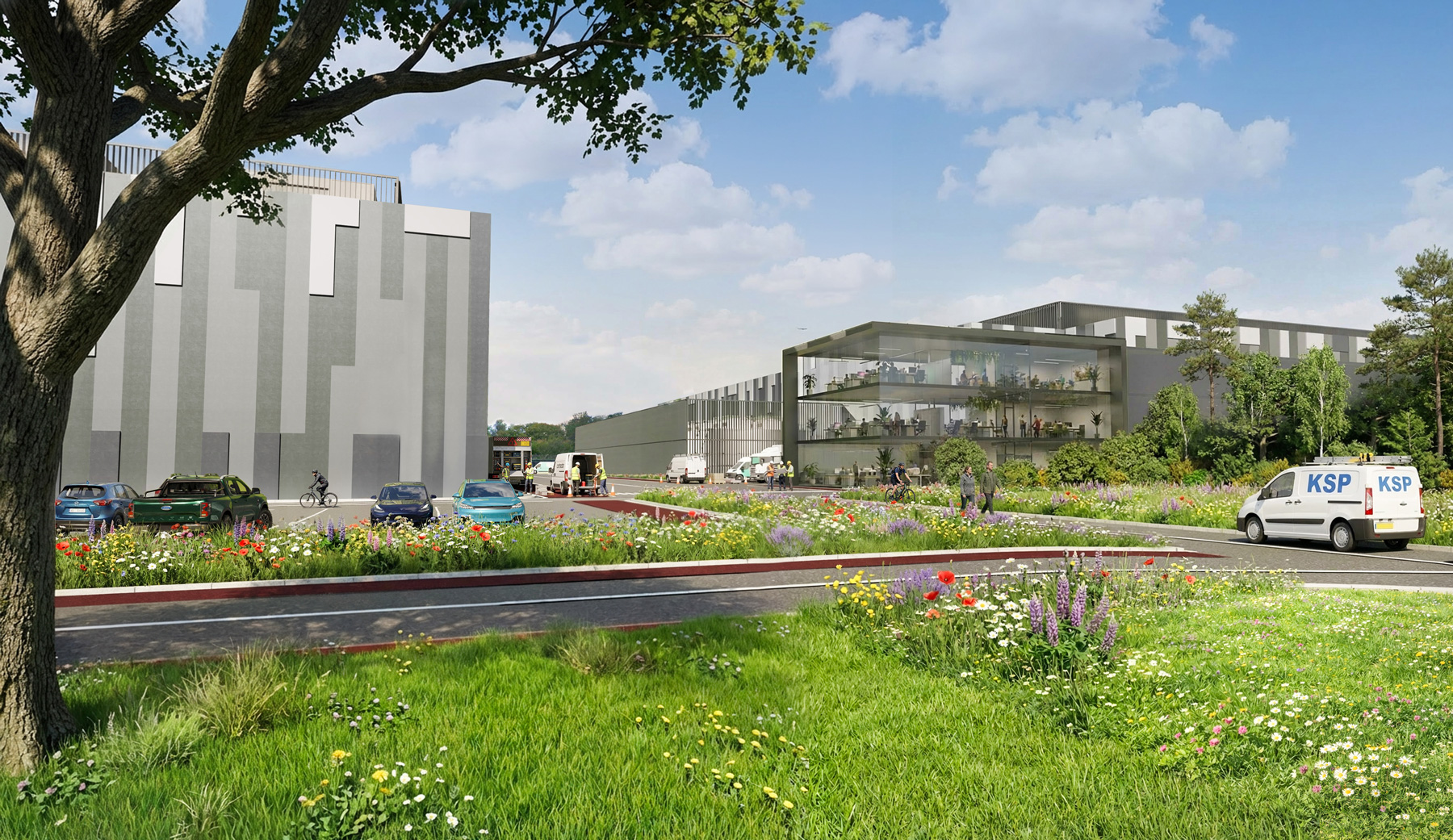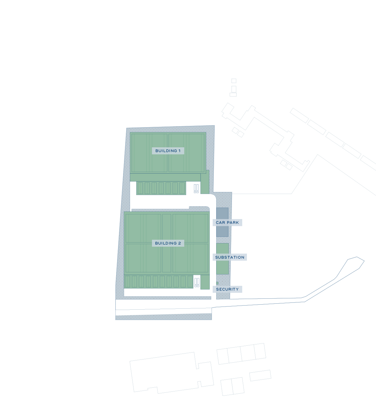 The site covers 6.13 hectares and comprises buildings formerly used as the British Airways Cranebank training centre, now vacated with demolition commencing in 2026. TTSP have designed a two-building data centre scheme within the parameters of the existing B8 consent. The proposed layout incorporates dedicated office space, secure compound and plant areas, together with associated circulation, parking, and landscaped zones.