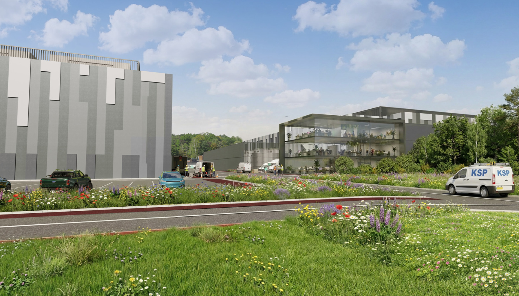 The site covers 6.13 hectares and comprises buildings formerly used as the British Airways Cranebank training centre, now vacated with demolition commencing in 2026. TTSP have designed a two-building data centre scheme within the parameters of the existing B8 consent. The proposed layout incorporates dedicated office space, secure compound and plant areas, together with associated circulation, parking, and landscaped zones.